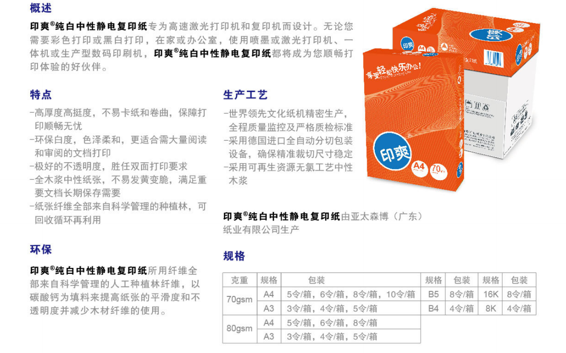 印爽复印纸70gA4-5包/箱