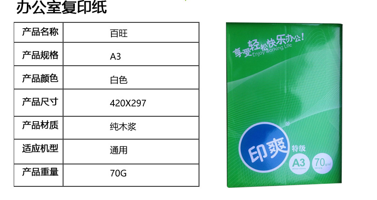 特级印爽复印纸70gA3-5包/箱